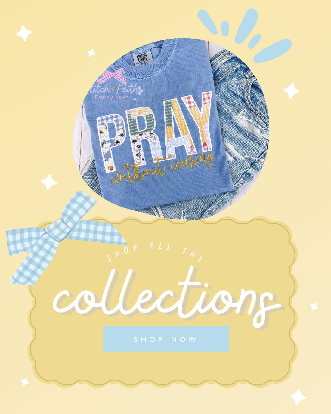 Welcome to Stitch+Faith Embroidery! Each piece is custom-created with care. Current processing time is 2 weeks before shipping. Let's get started creating something special for you.