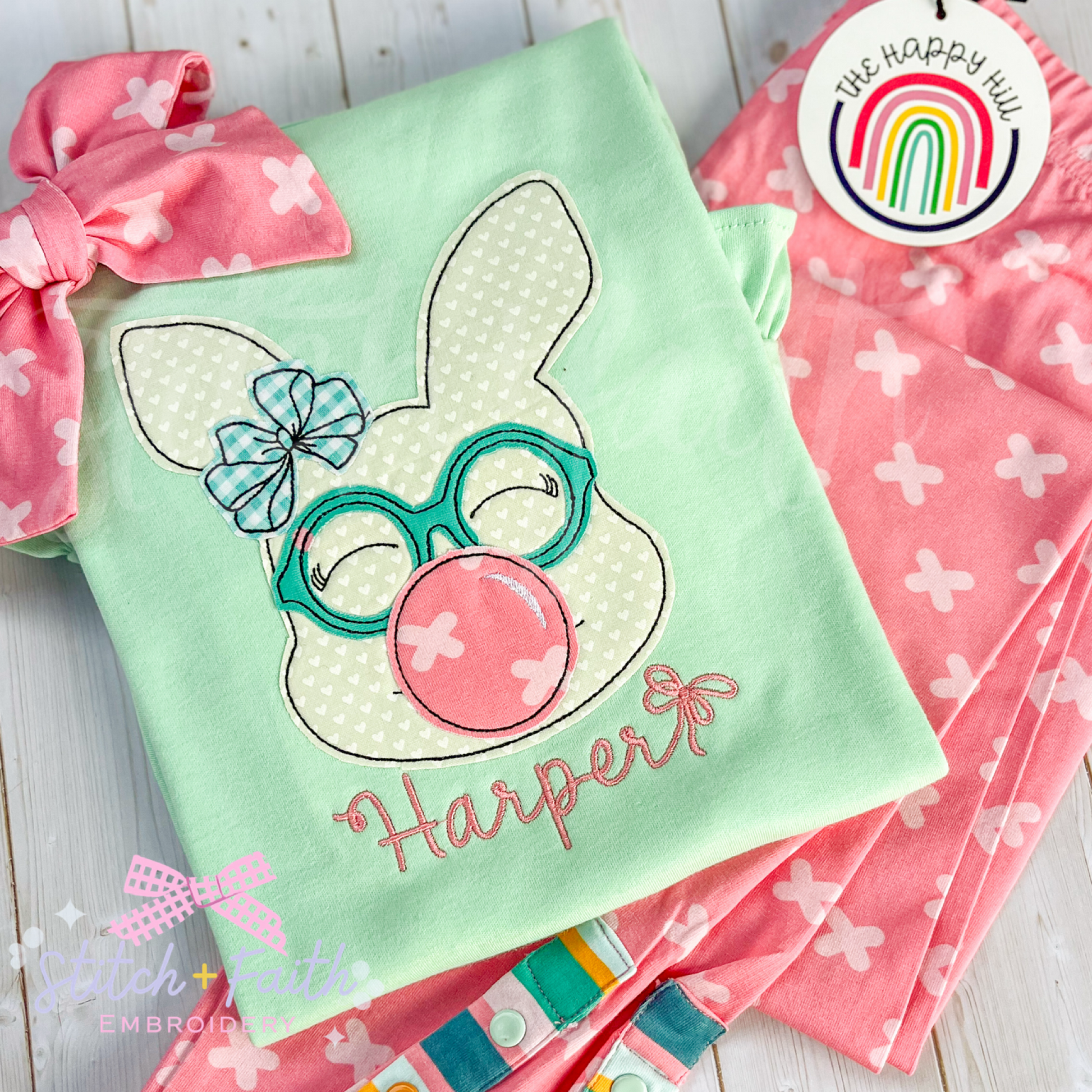 This adorable ruffle shirt is perfect for your little bunny! Featuring a playful embroidered Appliqué, finished with your child’s name stitched over the design, it’s a fun and personalized piece she’ll love to wear.