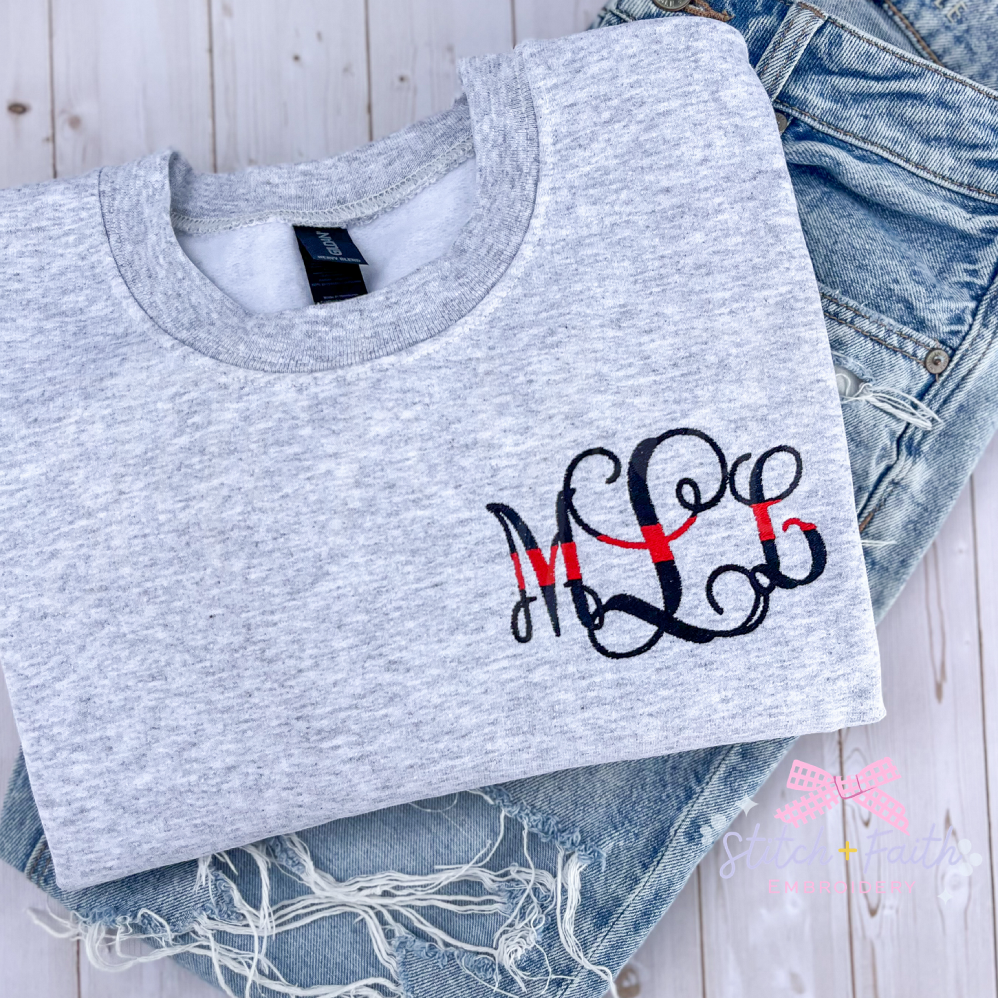 Thin Red Line Monogram Firefighter Wife Personalized Sweatshirt